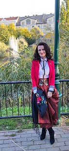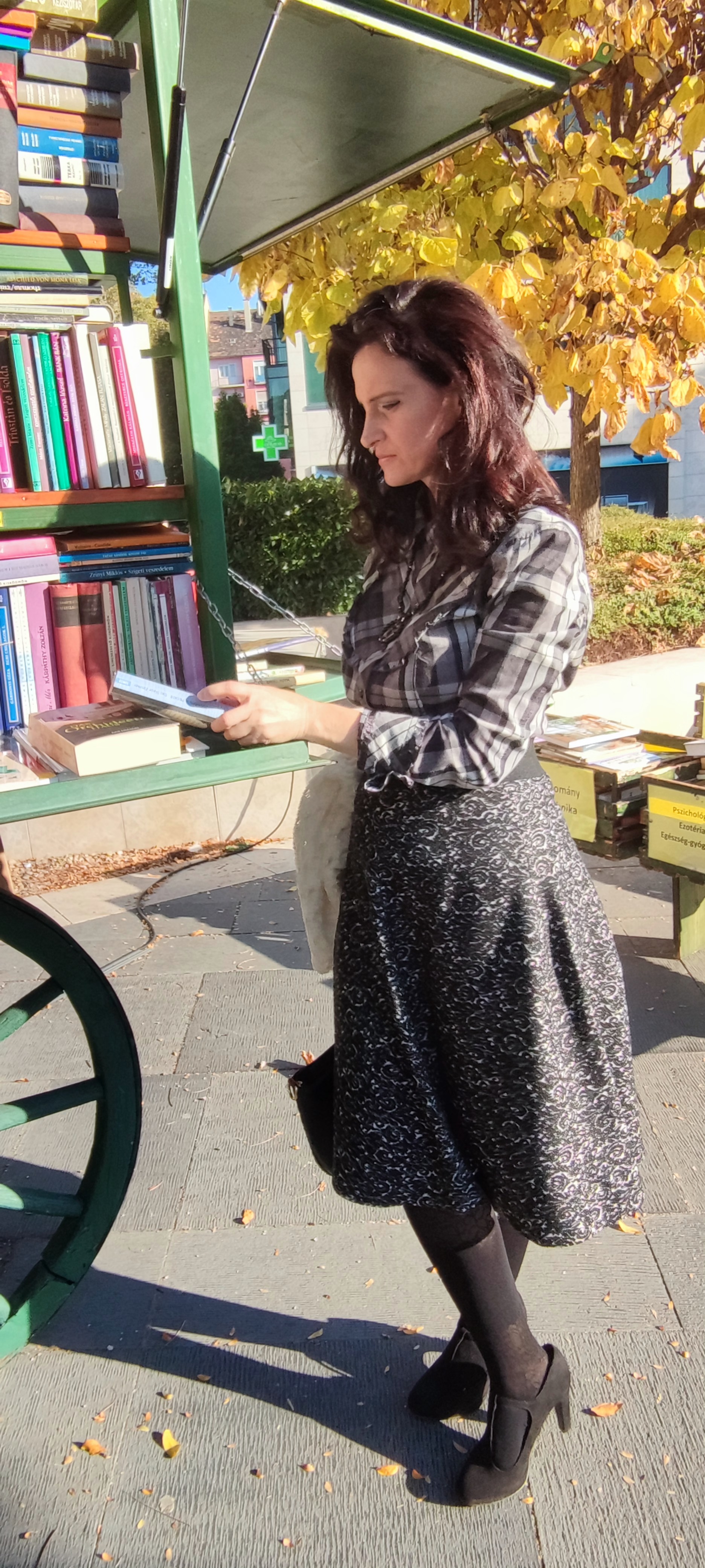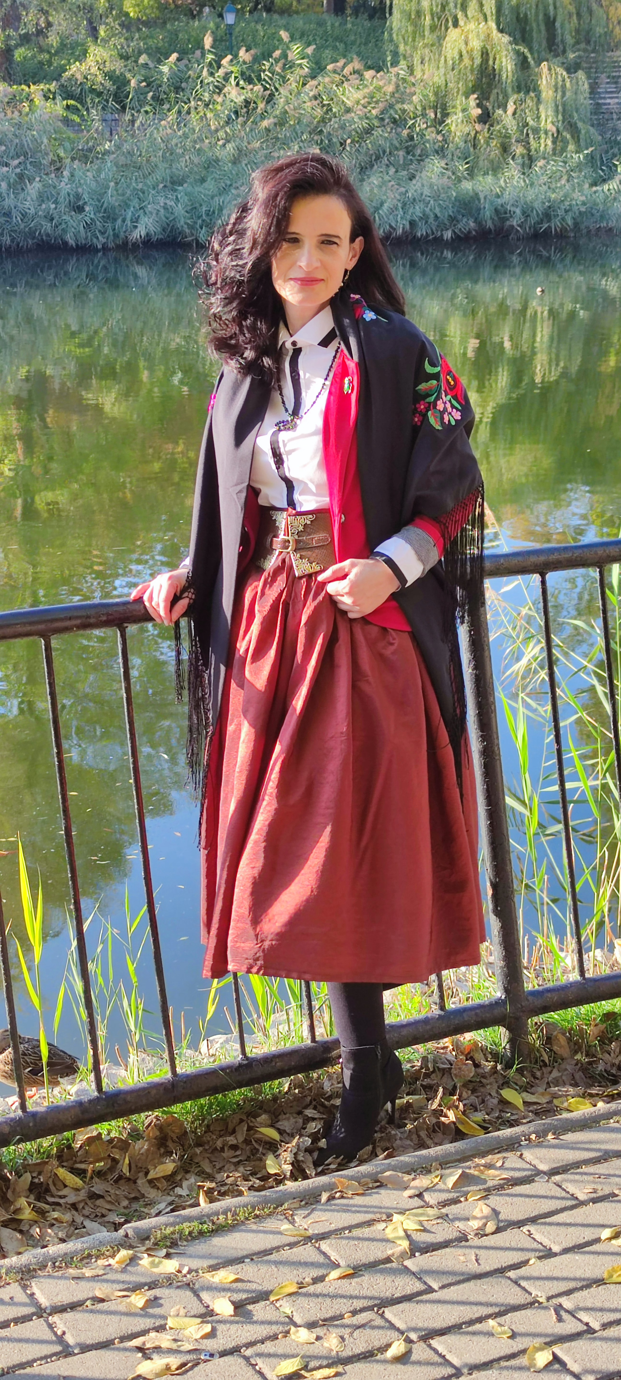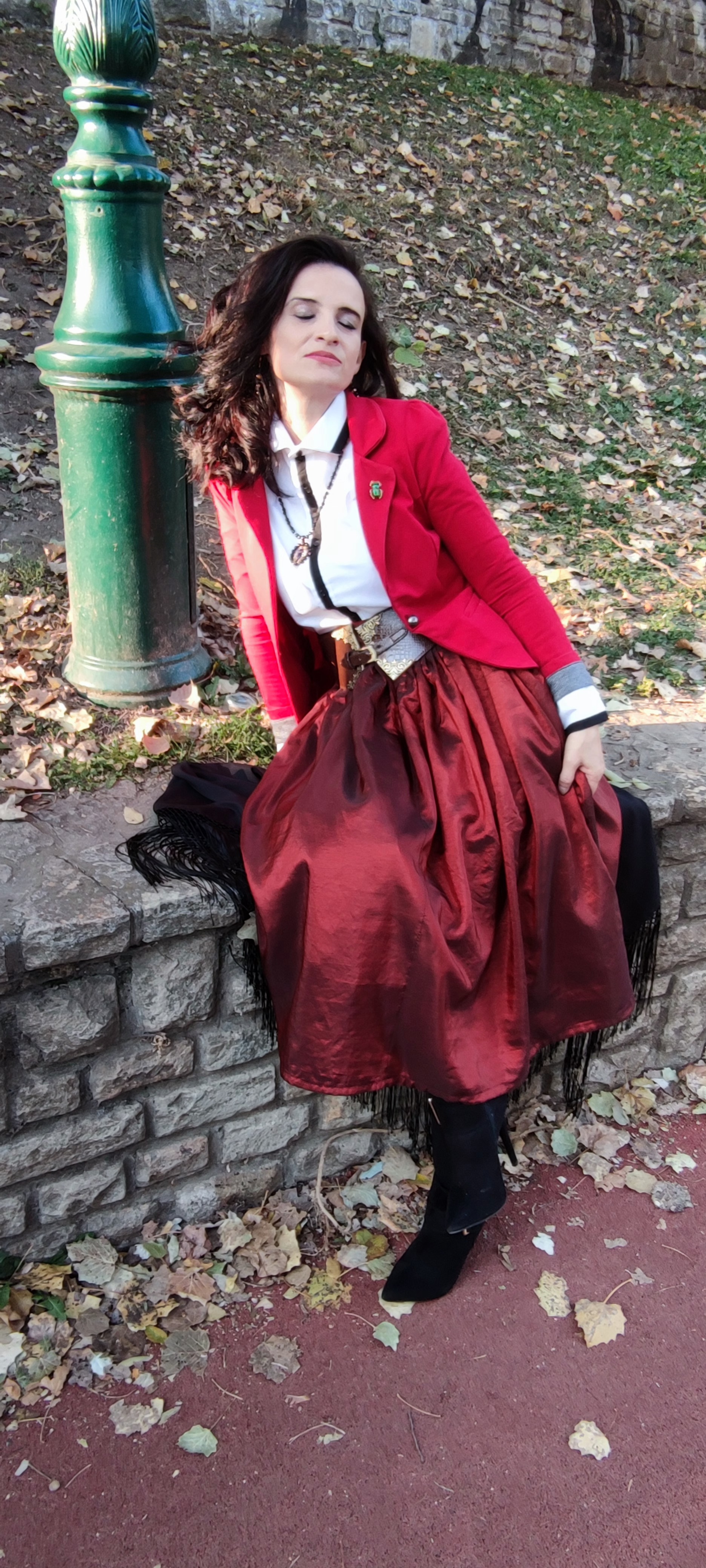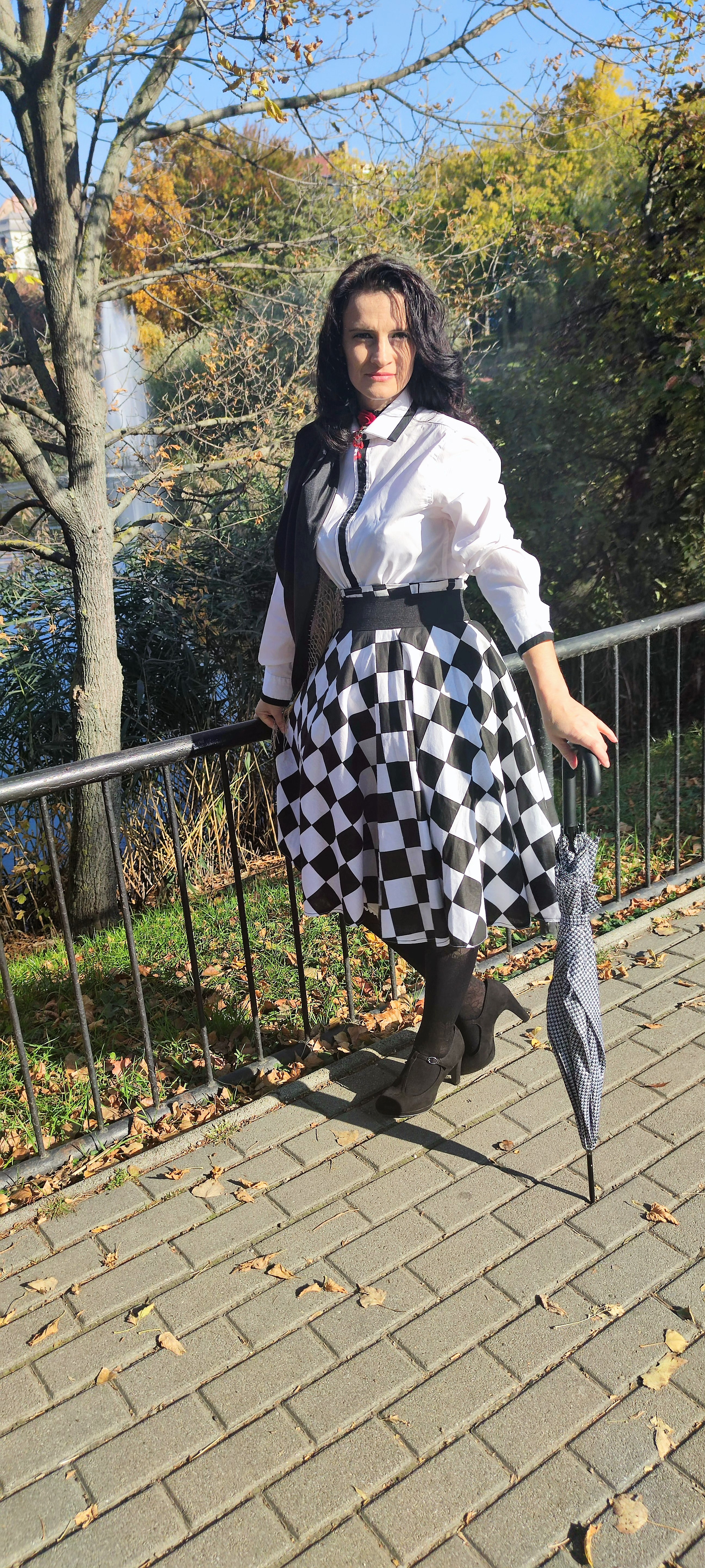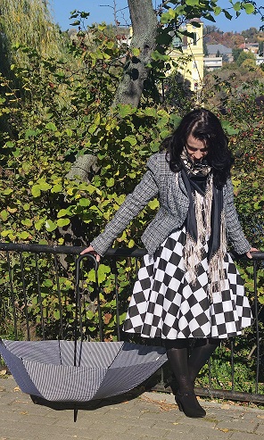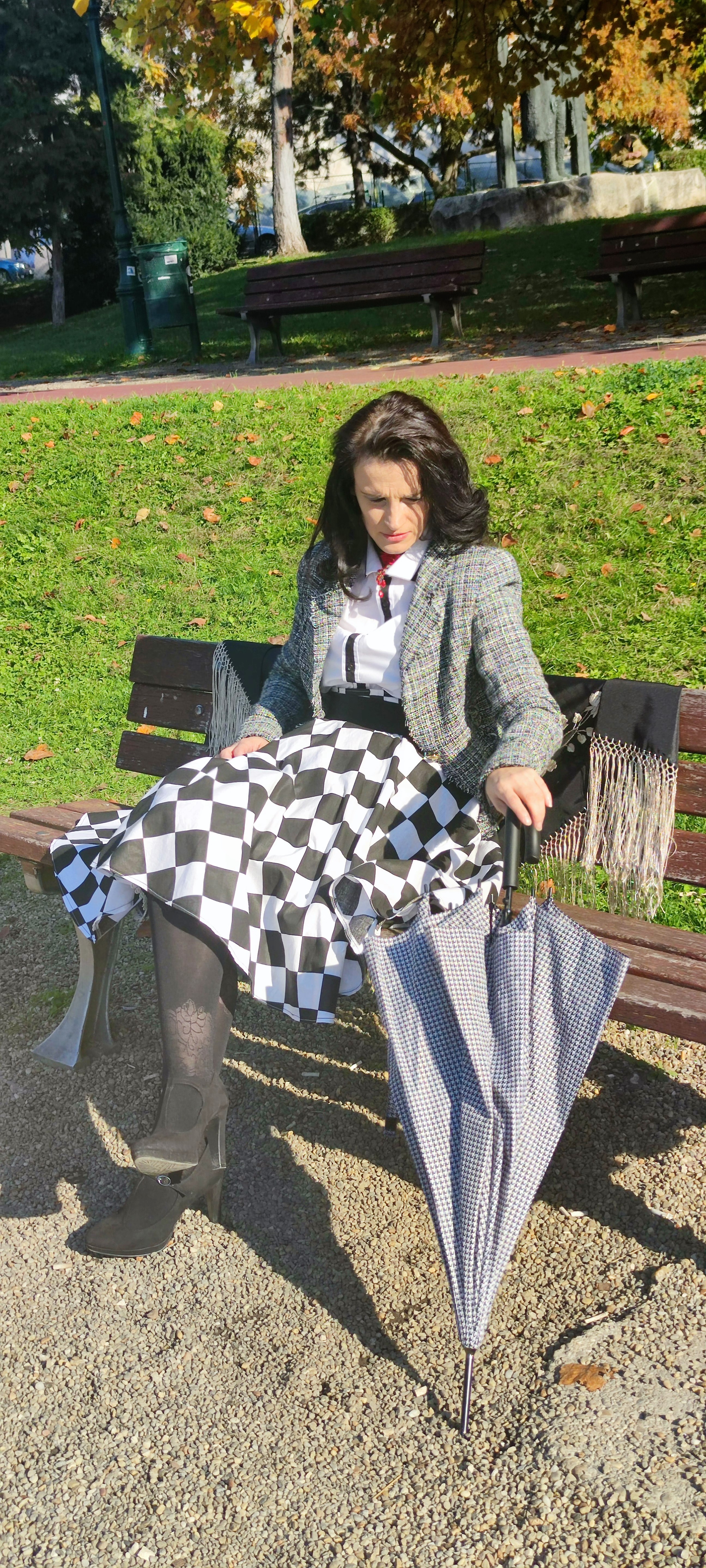 hosszú szoknyával, ami így erősen háromszögesítette az alkatot, és ez